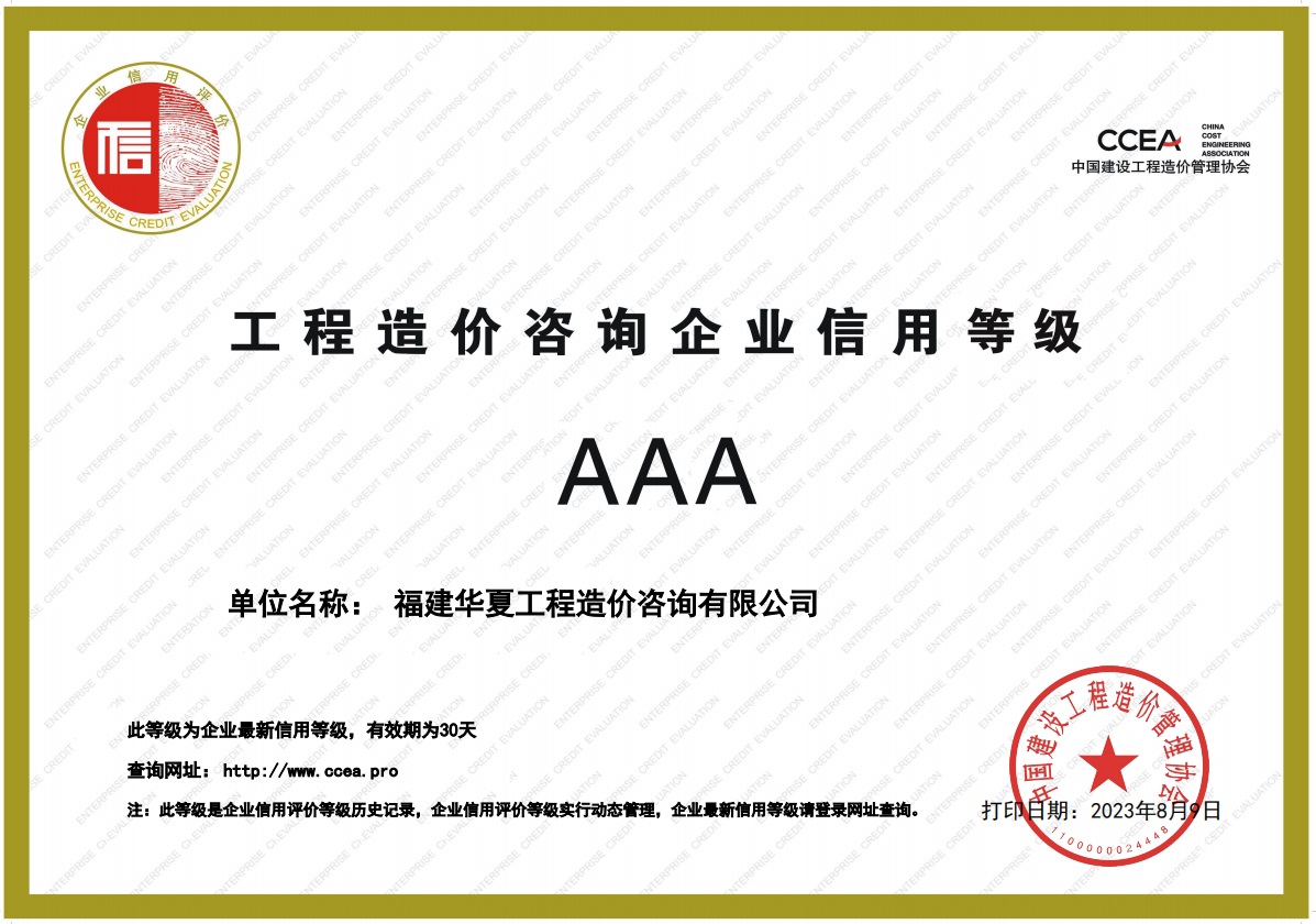 工程造价咨询企业信用等级AAA