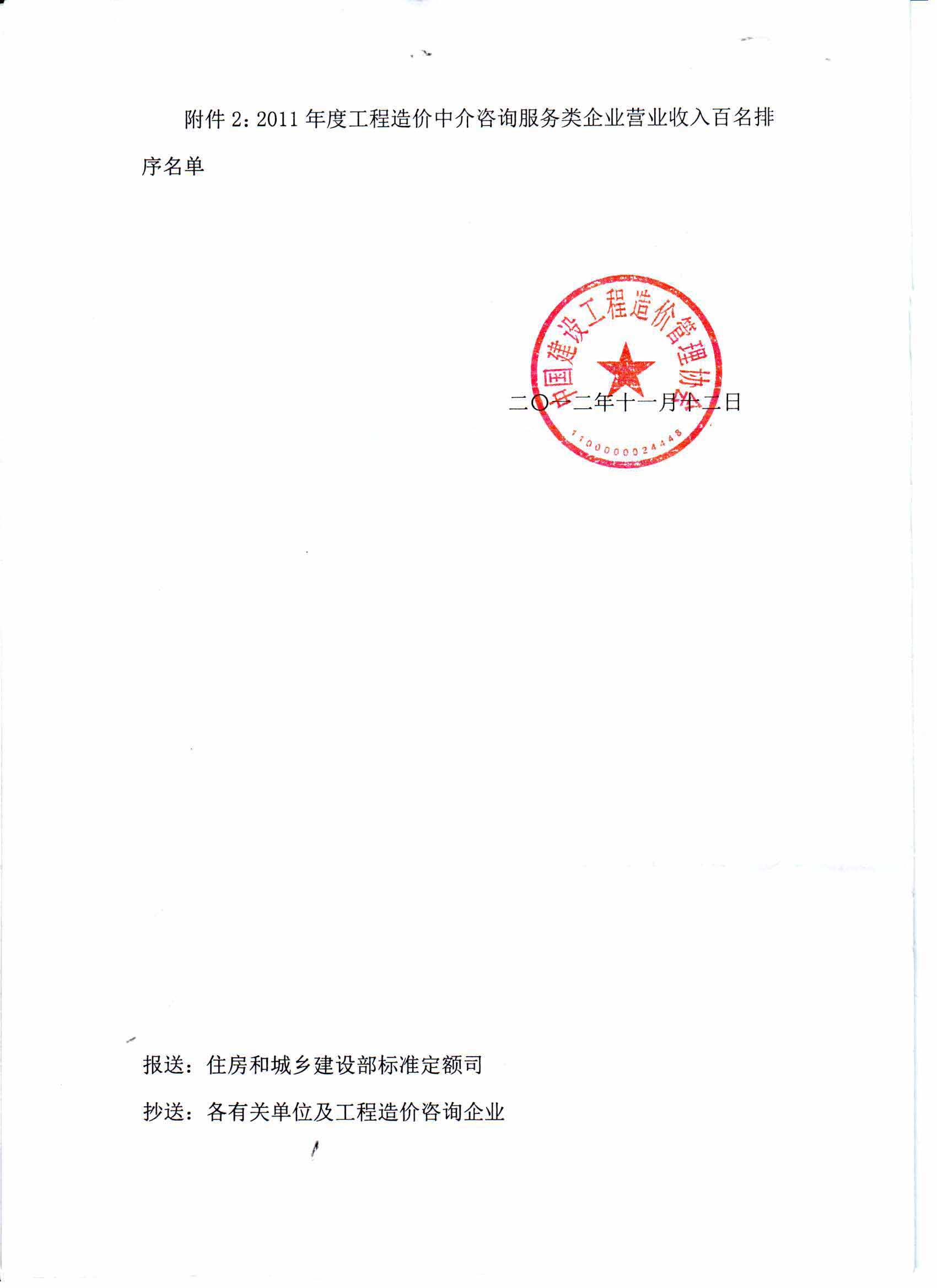 公司进入2011年度中国工程造价咨询企业百强