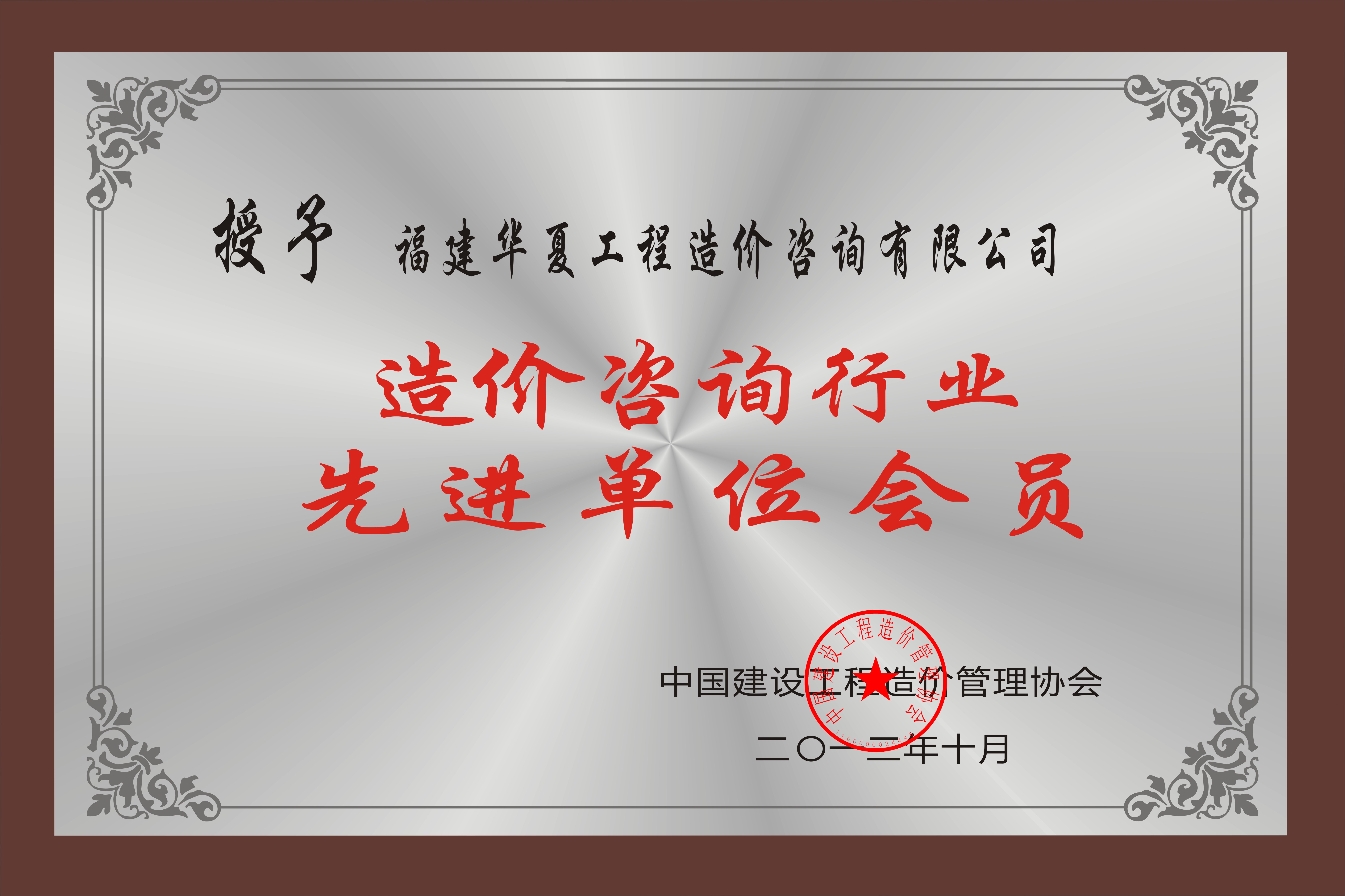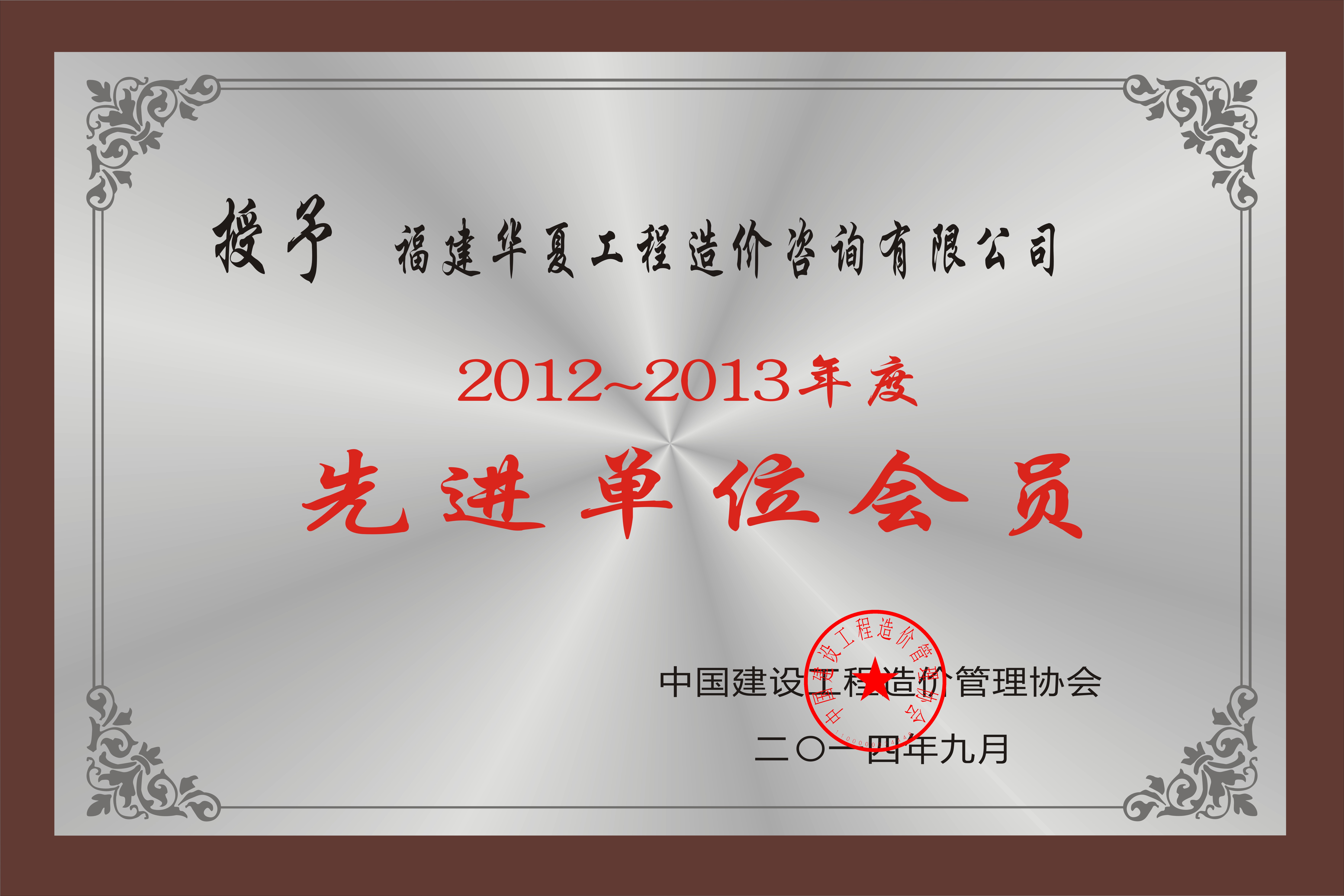 2011、2012、2013、2014连续四年被中价协评为中国工程造价咨询行业先进单位