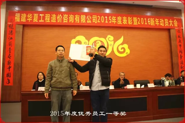 公司副总经理方总为陈斯俊颁发2015年度优秀员工一等奖奖项