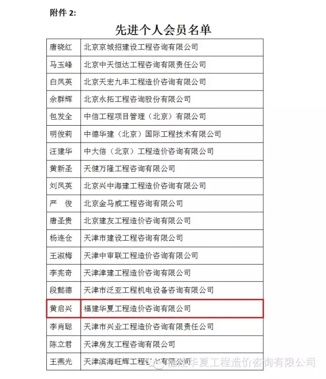 根据《中国建设工程造价管理协会关于开展2014年度评优选先活动的通知》,经企业申报、各省评比推荐、中价协组织评审小组审核,200家先进单位会员(附件1)、200名先进个人会员(附件2)名单出炉,福建企业仅两家入选中价协先进单位会员,我公司华体会(hth)集团官网-HTH.COM连续第四次荣获“先进单位会员”称号,同时,公司董事长黄启兴先生荣获“先进个人会员”称号。