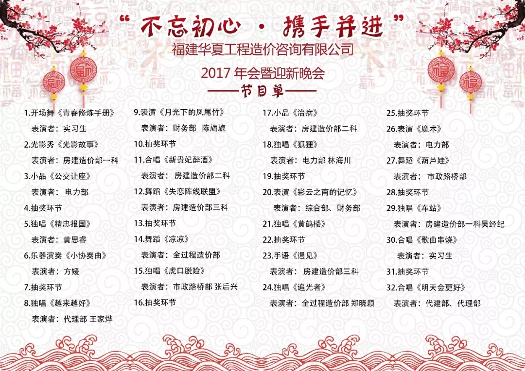 “不忘初心 携手并进 聚力华夏 共谱芳华”华体会(hth)集团官网-HTH.COM2017年会暨迎新晚会随着节目表演的进程而完美收官,各个科室团队纷纷上台合影留念,并纷纷彼此祝福。这场高质量、高水平、温馨又欢乐的年会不仅给大家带来了欢声笑语,同时让华夏团队们连接得更加紧密了,让大家对来年的工作树立了信心,更加干劲十足!